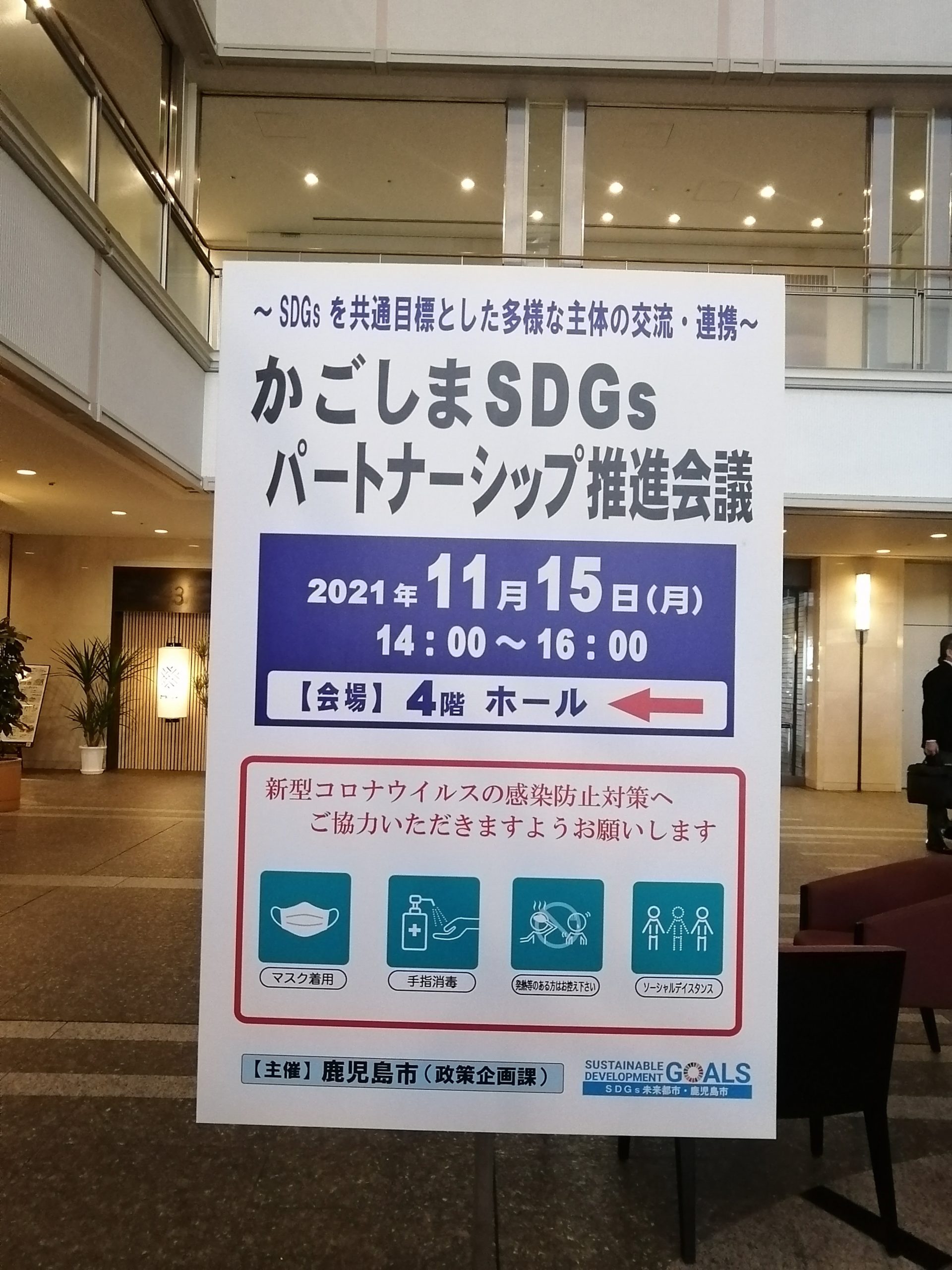 というわけでSDGsへの理解を深めるべく、鹿児島市主催の「かごしまSDGsパートナーシップ推進会議」に出席しました。