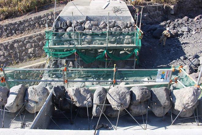 工事内容を簡単にご説明しますと西道川は災害から森を守るための堰堤の底上げを有村川は災害から人々の生活を守るために堰堤に厚みを出す工事を行っています。