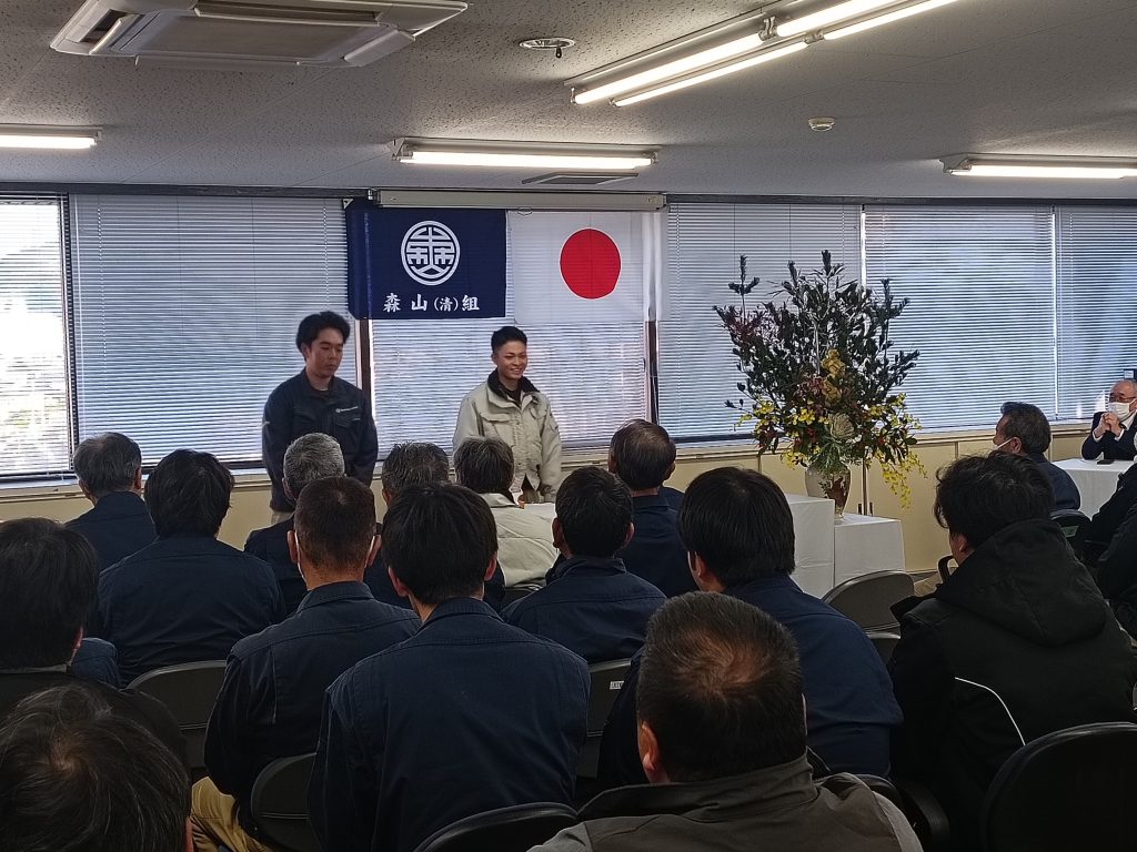 1月4日は本社において年始式が行われました。 安全と健康を願い安全祈願祭が執り行われたあと 今年成人を迎えた社員のお祝いがありました。